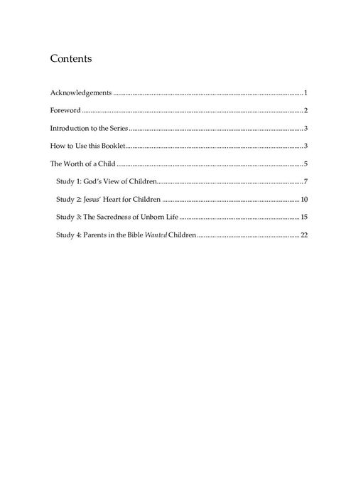 Book one of the Children and Families in the Bible series reflects on what the Bible says about children, and how our churches, communities, societies, and cultures view the worth and role of children. It zeros in on the inherent worth of children, regardless of their gender, status, health or any other external characteristics. This booklet may be used for private study or as an instruction tool in studies and workshops in churches, amongst child care workers, or other settings. It is suitable for young adults and older (ages 18+) and is a downloadable book in PDF format.